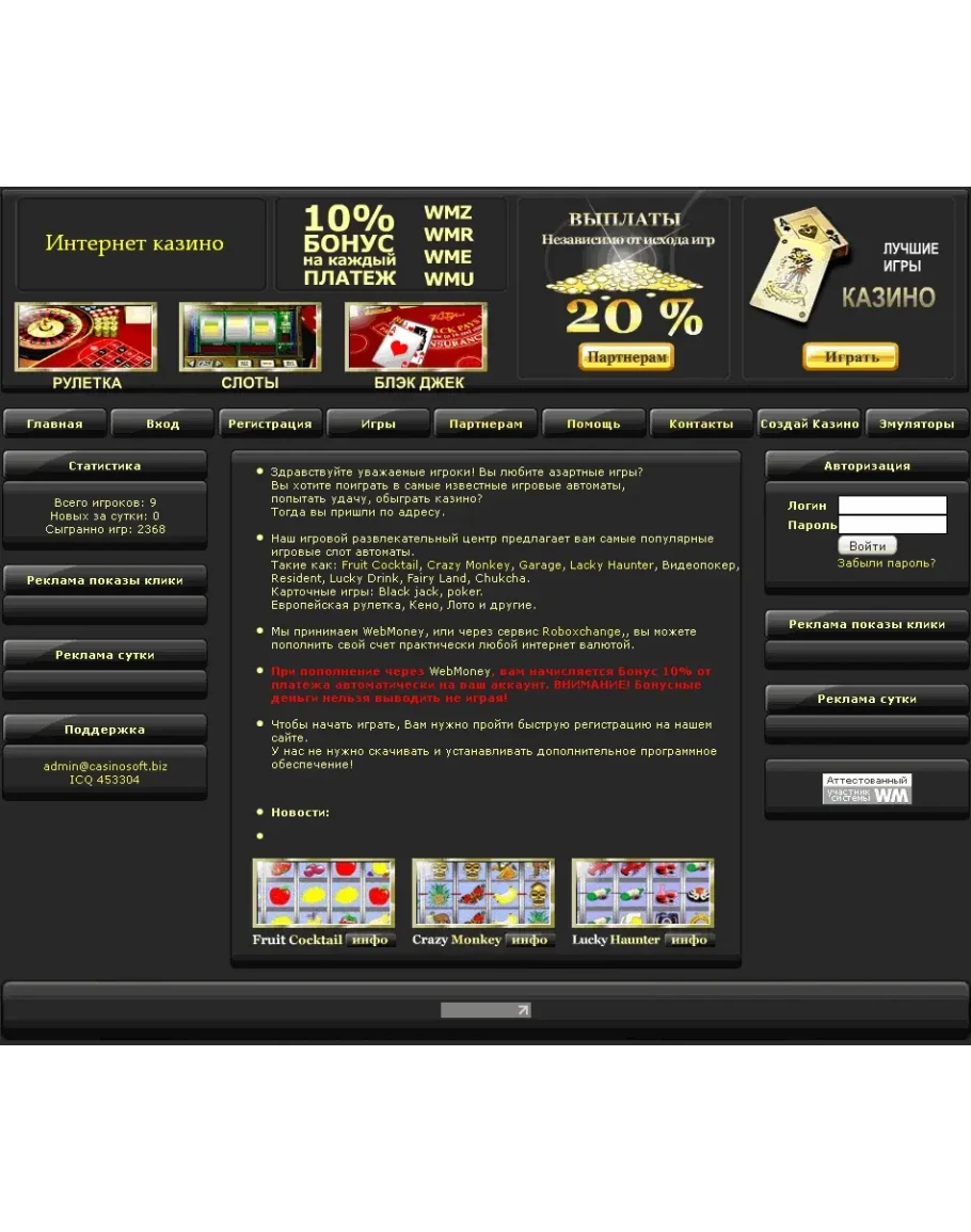 админка казино: http://koloda.in/adm/ логин/пароль: admin/admin