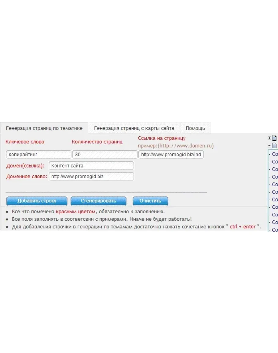 От вас потребуется только вставить набор ключевых слов в программу и залить необходимый текст по теме сайта.