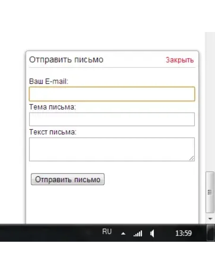 Скрипт обратной связи с посетителями через e-mail. Очень удобный и красивый внешне. Кнопка обратной связи располагается внизу экрана, в правом углу. При нажатии по кнопке выезжает форма обратной связи.