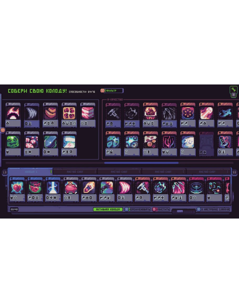 В Slime 3K в стандартную формулу survivor-like мы постарались добавить больше стратегической глубины и возможность экспериментировать. Разблокируйте, улучшайте и сочетайте разные карточки, чтобы собрать свой уникальный арсенал безумных орудий. Вы сами выбираете, какие способности будут доступны в каждом отдельном сражении!