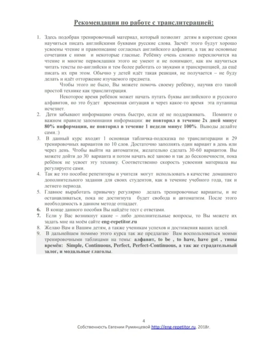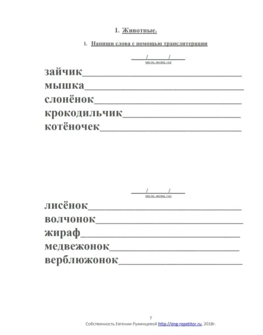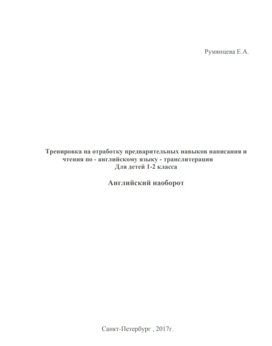 Тренировка на отработку предварительных навыков написания и чтения по - английскому языку - транслитерации