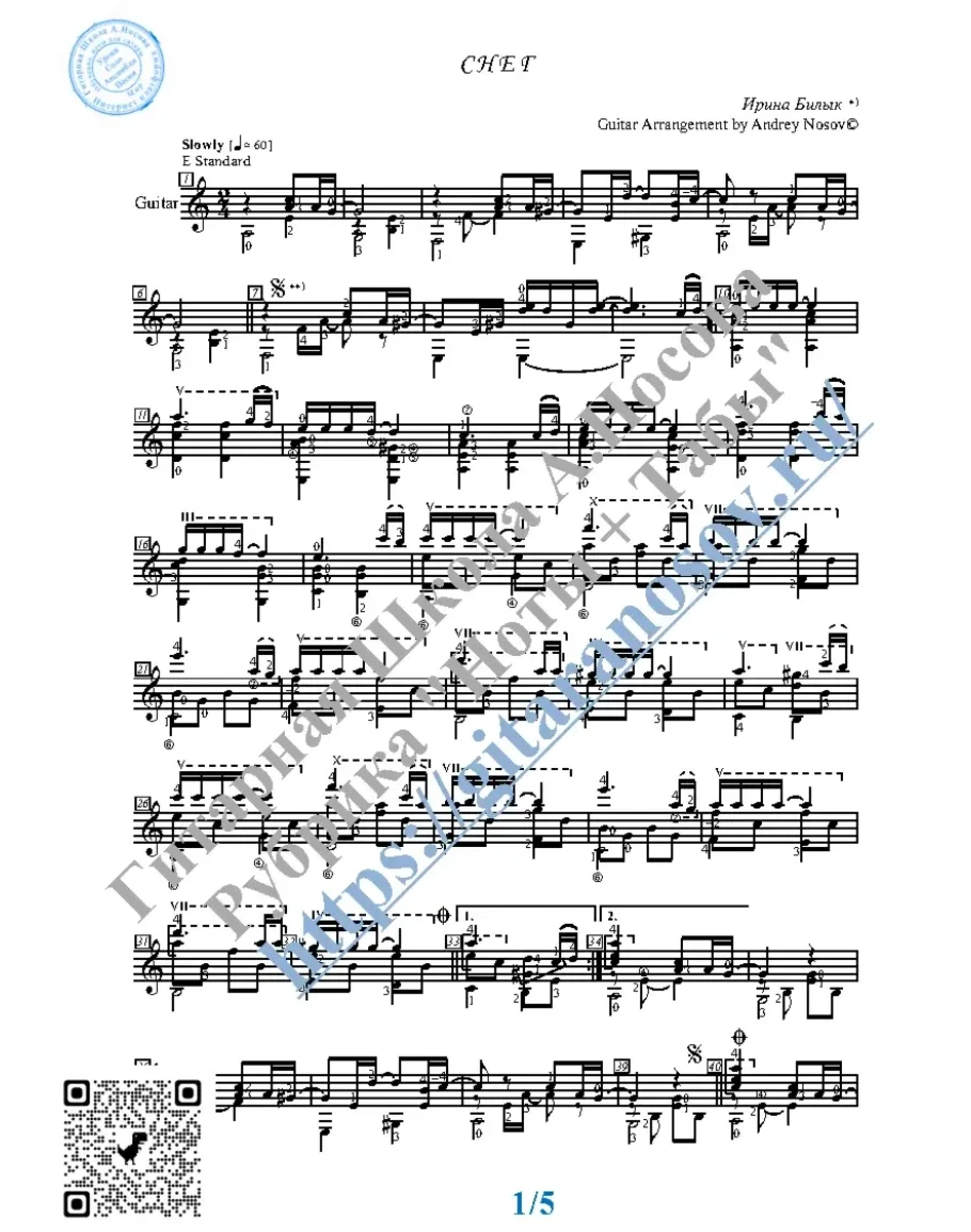 Товар включает в себя ноты с табулатурой и без табулатуры (в одном PDF). Прилагается ссылка на прослушивание / скачивание mp3.