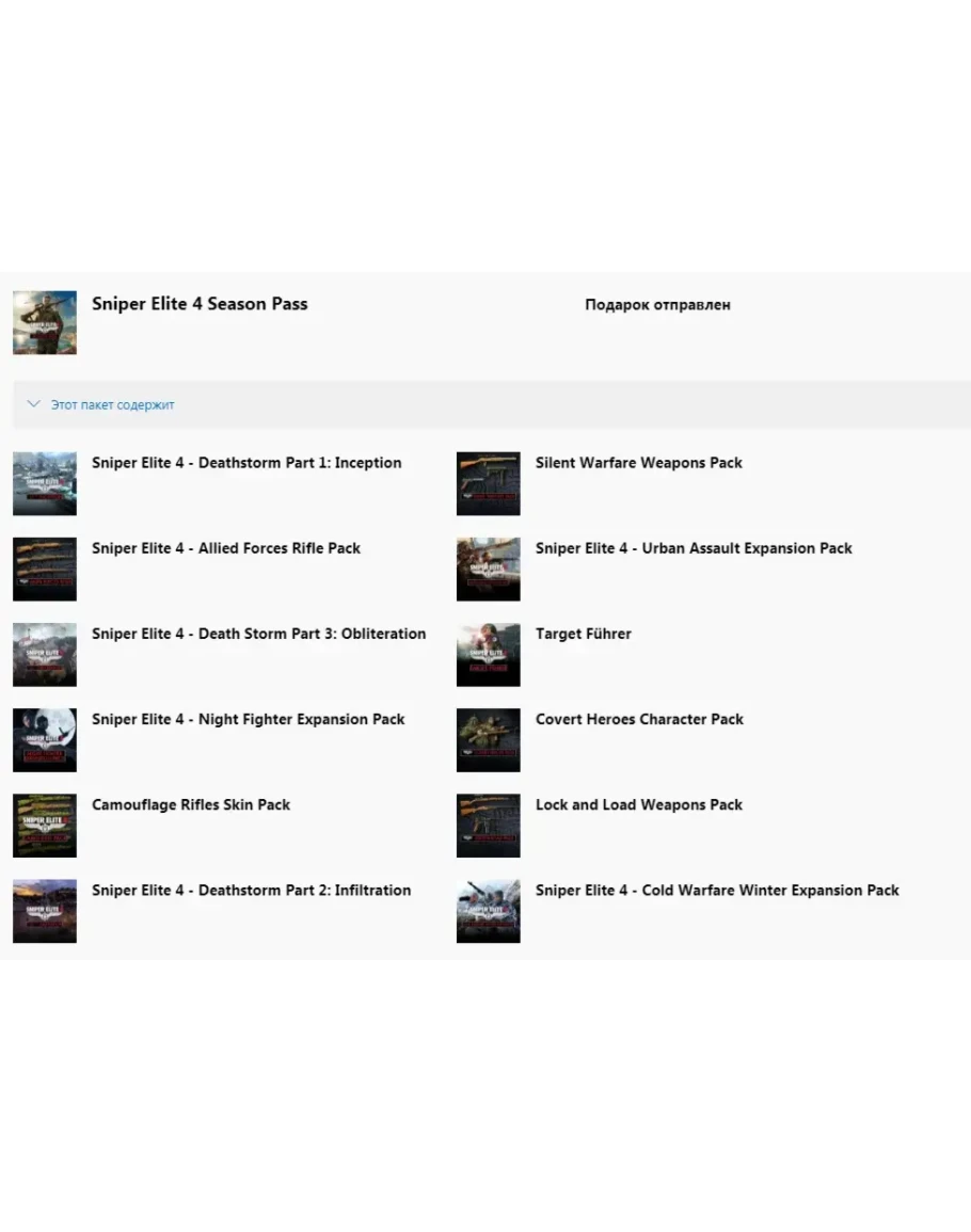 Sniper Elite 4 Season Pass DLC XBOX ONE ключ