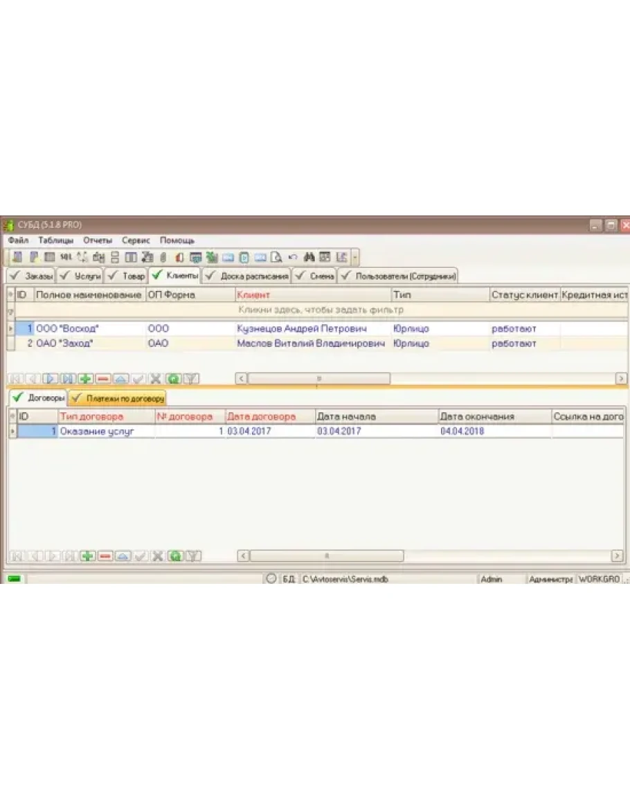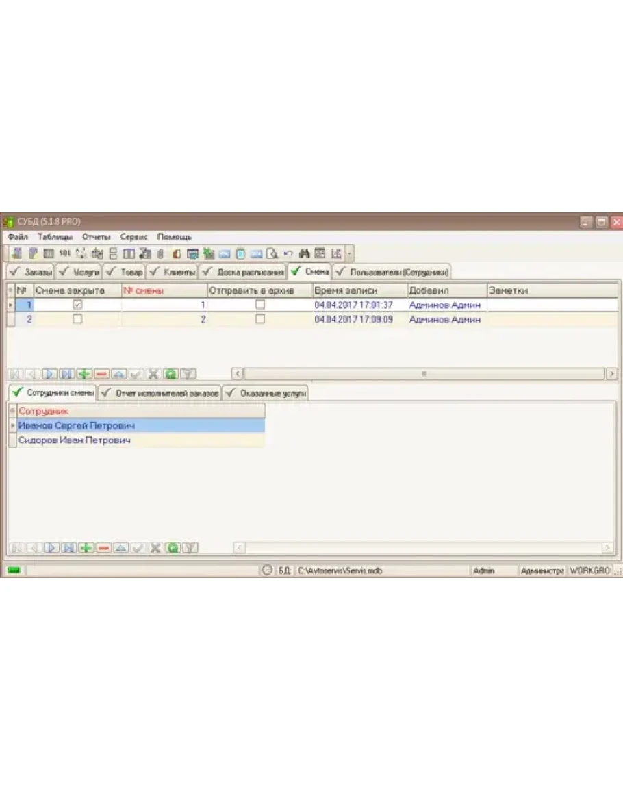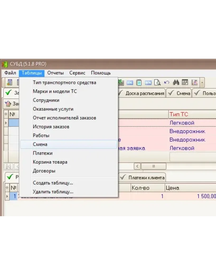 - Создавать карточки заказов-нарядов. В карточке хранить информацию о транспортном средстве, предоставленных услугах (работ), исполнителей услуг (работ), с возможной привязкой сотрудников выполняющих данную работу (услугу), платежей клиента, списка приобретенных товаров.