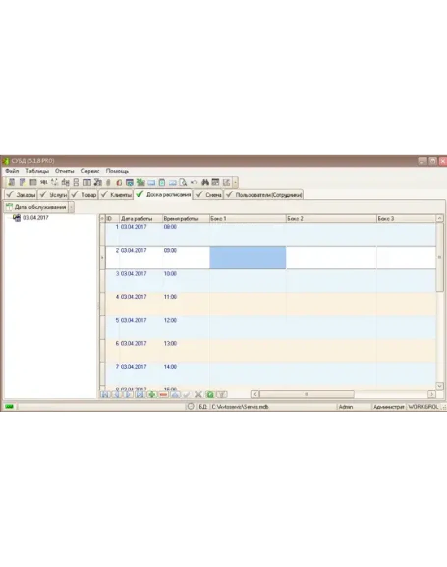 - Ведения доски расписания загруженности боксов в календаре.