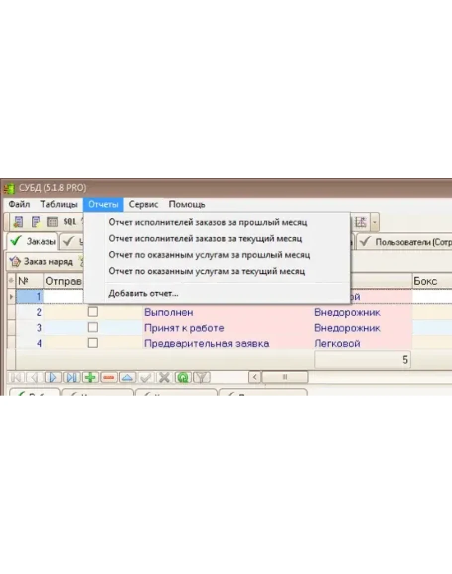 - Формирование отчетов по оказанным услугам, исполнителей заказов, сменам  и т.д. Возможность создавать новые отчеты.