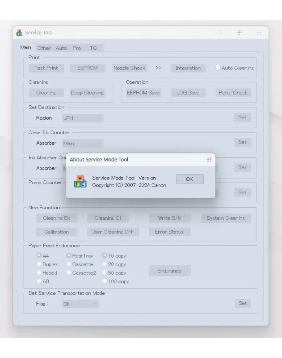 Canon Service Tool V6310 от конца 2024 года – это сервисная программа для большинства принтеров Canon, программа позволяет сбросить счетчик памперса (отработка, абсорбер), выполняет все сервисные функции, поэтому полезна будет как простому пользователю так и представителям сервисных центров.