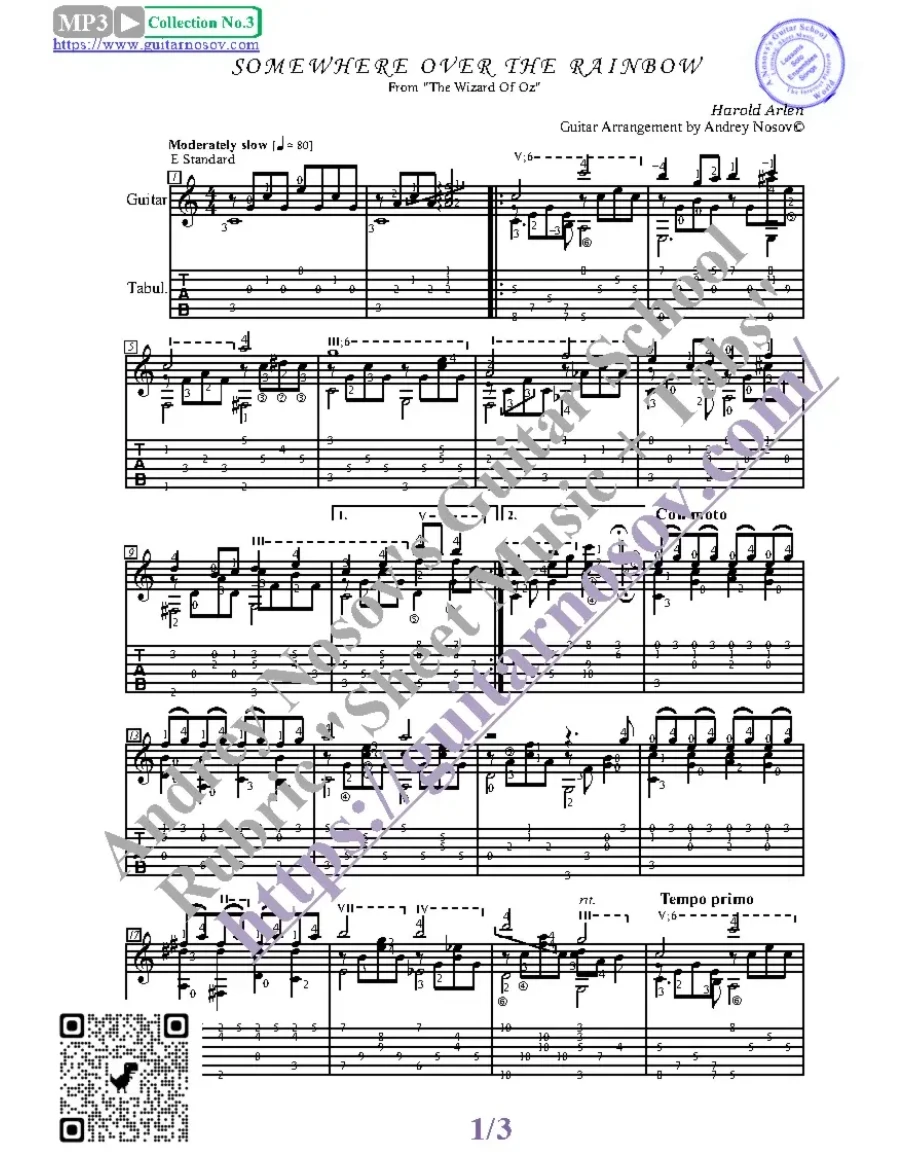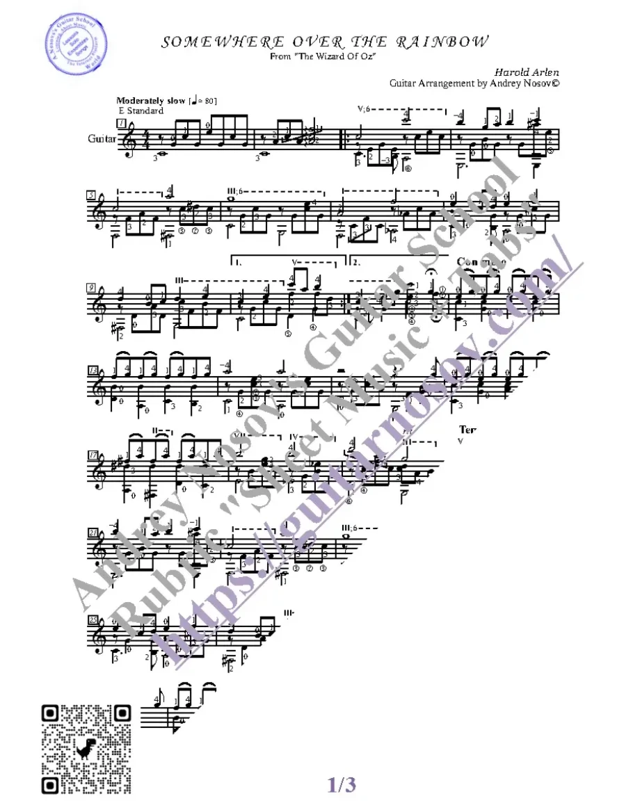 Кликните "Подробнее" для получения дополнительной информацииВашему вниманию предлагается композиция "Somewhere over the Rainbow (H.Arlen)", предназначенная для исполнения на 6-ти струнной гитаре СОЛО. Запись выполнена нотами, сопровождена подробнейшей аппликатурой и продублирована табулатурой.