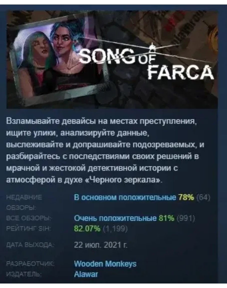 Взламывайте девайсы на местах преступления, ищите улики, анализируйте данные, выслеживайте и допрашивайте подозреваемых, и разбирайтесь с последствиями своих решений в мрачной и жестокой детективной истории с атмосферой в духе «Черного зеркала».