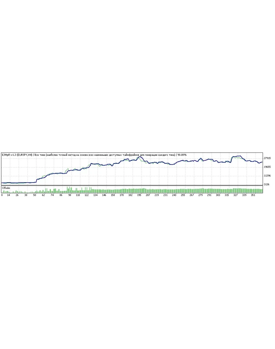 Торговый алгоритм EJWpR-v1.3 базируется на стахостике Williams’ Percent Range. Советник входит в рынок при формировании новой свечи, в случае если стахостик Williams’ Percent Range сигнализирует о возможном развороте. Для возникновения торгового сигнала, разворот должен иметь достаточную динамику и произойти в зоне перекупленности или перепроданности.