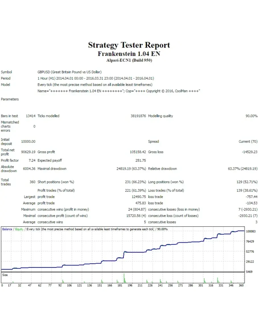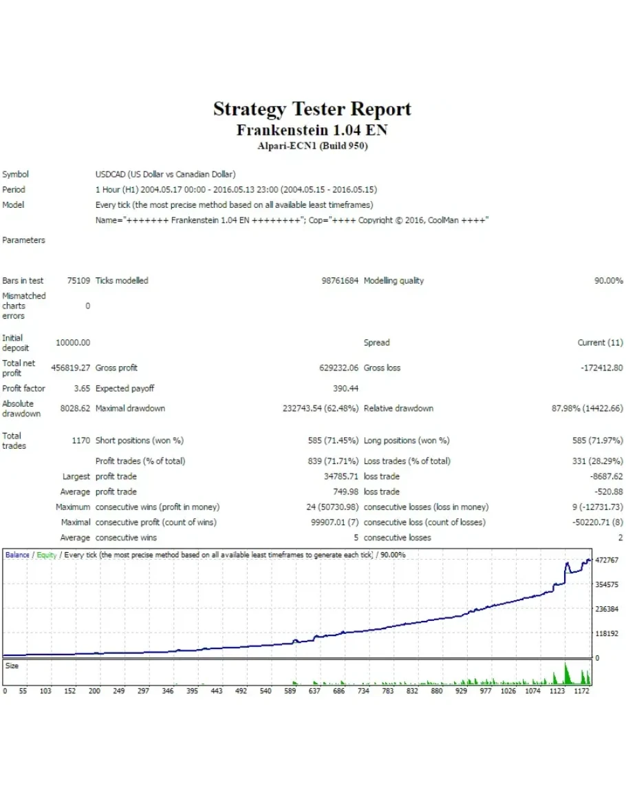Несколько недель усердной работы над торговым советником Франкенштейн, затем еще несколько недель оптимизаций, улучшений и доработок. И вот наконец-то готов долгожданный советник с очень интересной стратегией торговли. Несколько хитрых приемов с индикаторами позволили сделать так, что советник очень эффективно определяет тренд и следует за ним. А когда тренд заканчивается, то работает во флете.