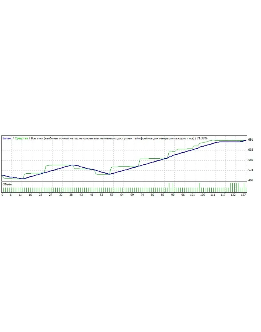 В самом советнике, для определения сигналов вхождения в рынок анализируется два таких индикатора с разными временными периодами. Результатом работы советника стало почти 200% увеличение капитала в течении одного месяца.