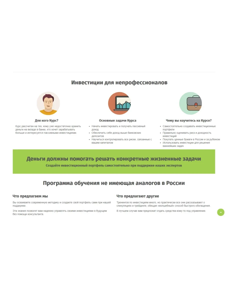 Тренингов по инвестициям много, но практически все они рассказывают о спекуляциях и трейдинге, обещая «волшебный» способ быстрого обогащения.