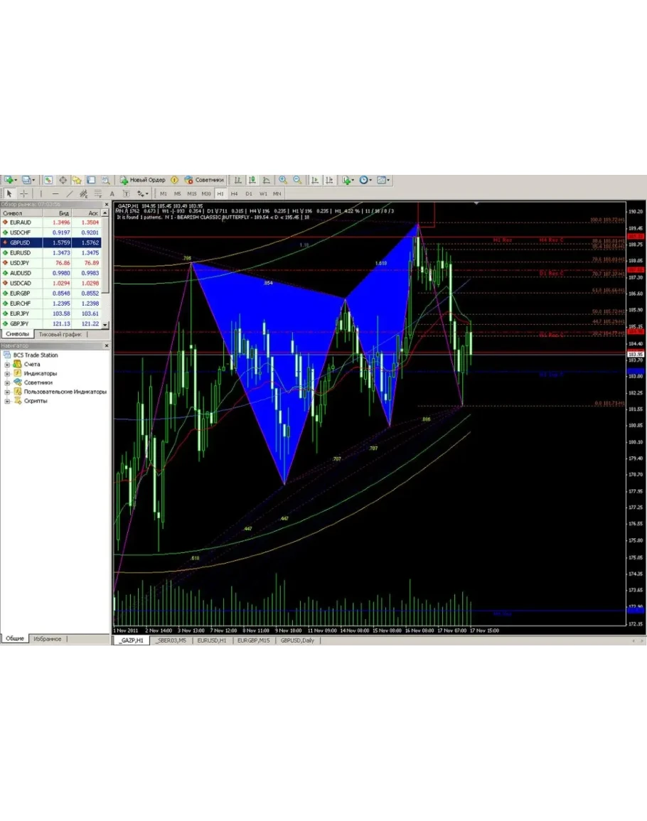 Модель разработана еще в 1935 году, когда H. M. Gartley опубликовал свой труд «Profits In The Stock Market». Сегодня ее переложили на язык программирования, и она доступна для применения в качестве шаблона в программе Meta Trader. Использование очень простое, работает на любых тайм-фреймах, как применительно к акциям, так и валютным парам, нужно лишь дождаться появления сигнала и открыть позицию. Модель дает лучшие точки входа в рынок и является разворотной. Эффективность: 7 из 10 сделок оказываются прибыльными, главное не жадничать и ставить стоп не слишком далеко.