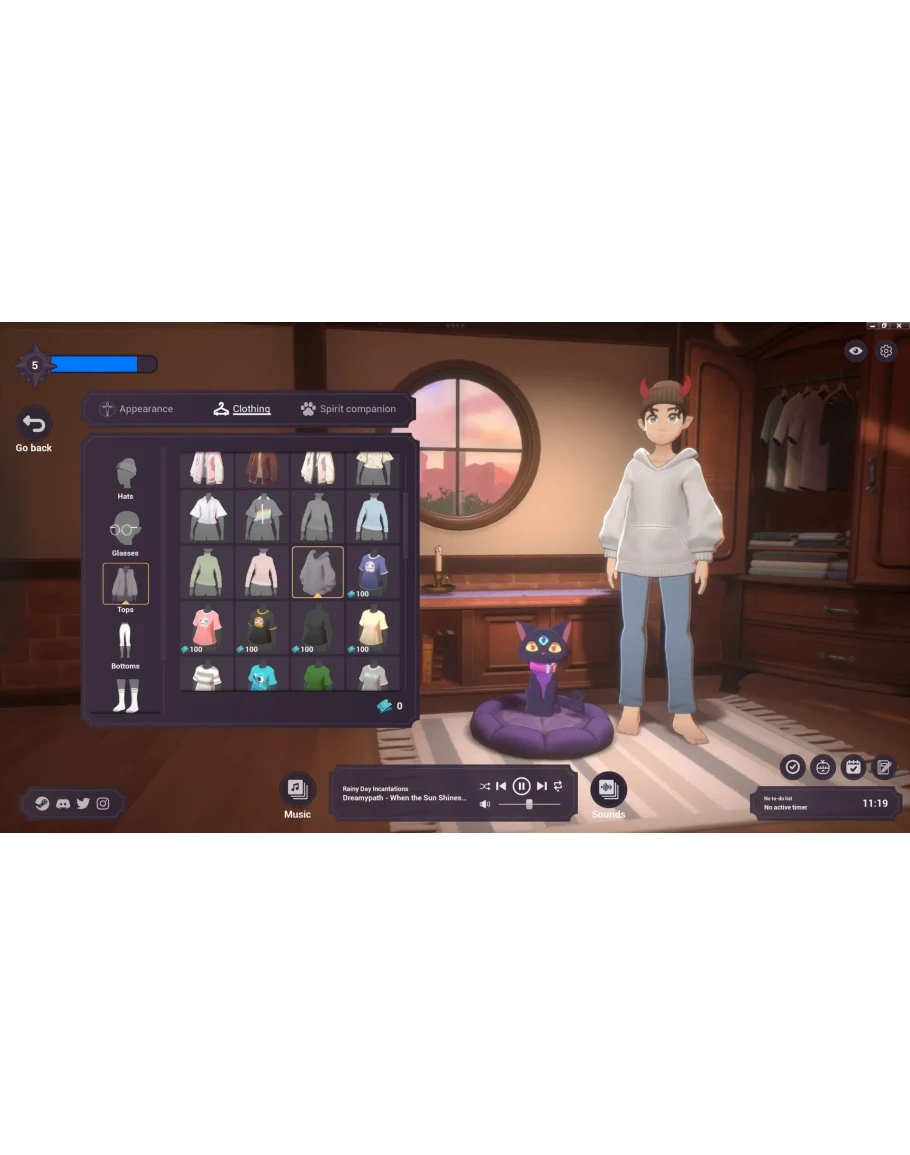 Учись, расслабляйся или повышай производительность в Spirit City. Создай атмосферу с лоуфай битами и атмосферными звуками, настрой персонажа и духовного друга, используй инструменты продуктивности. Все это, в то время как обнаруживаешь скрытых духов, чтобы добавить в свою коллекцию.