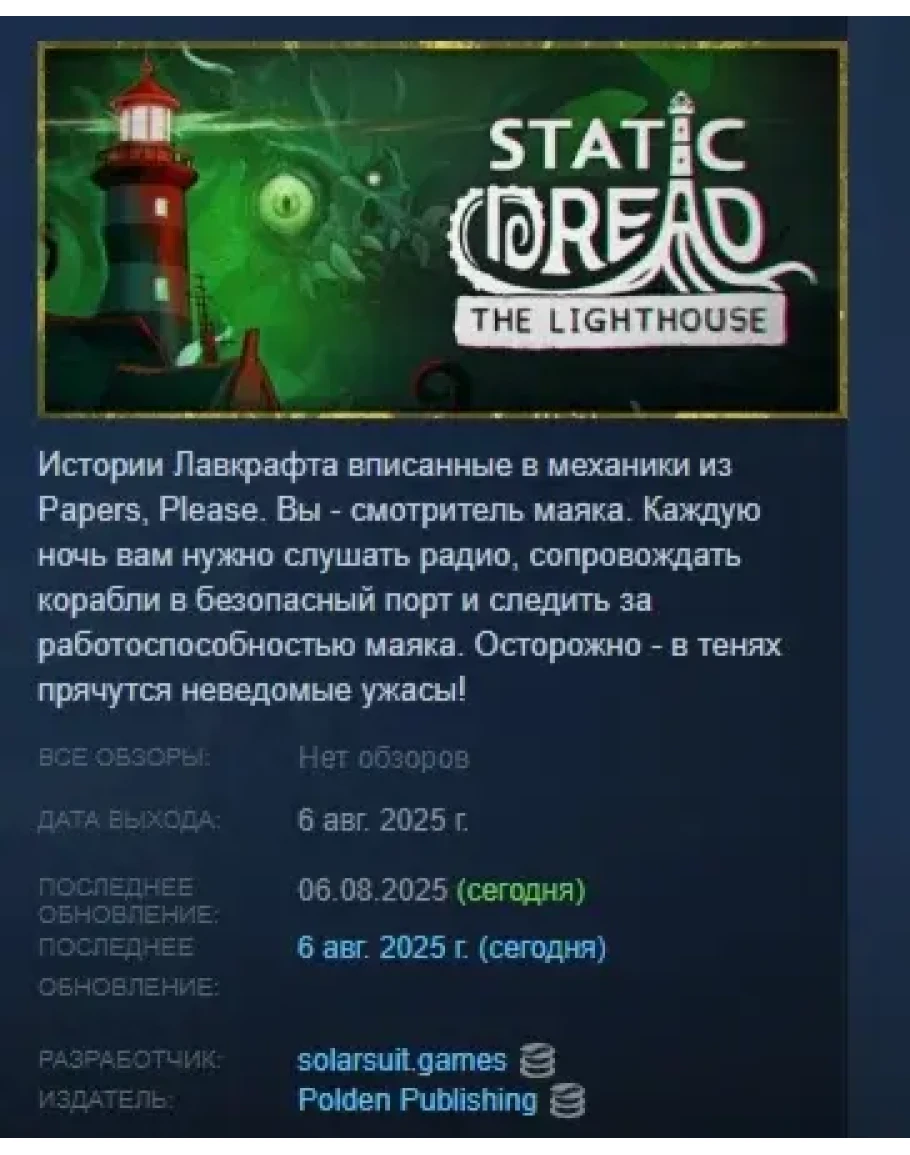 Static Dread: The Lighthouse АВТОДОСТАВКА STEAM РОССИЯ