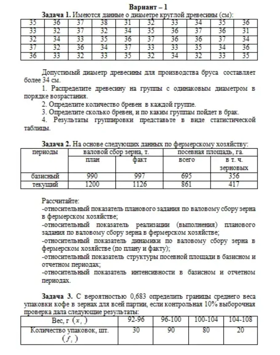 Задача 1. Имеются данные о диаметре круглой древесины (см):