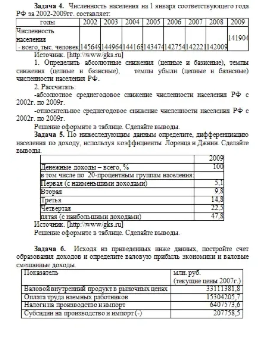 Задача 4. Численность населения на 1 января соответствующего года РФ за 2002-2009гг. составляет: