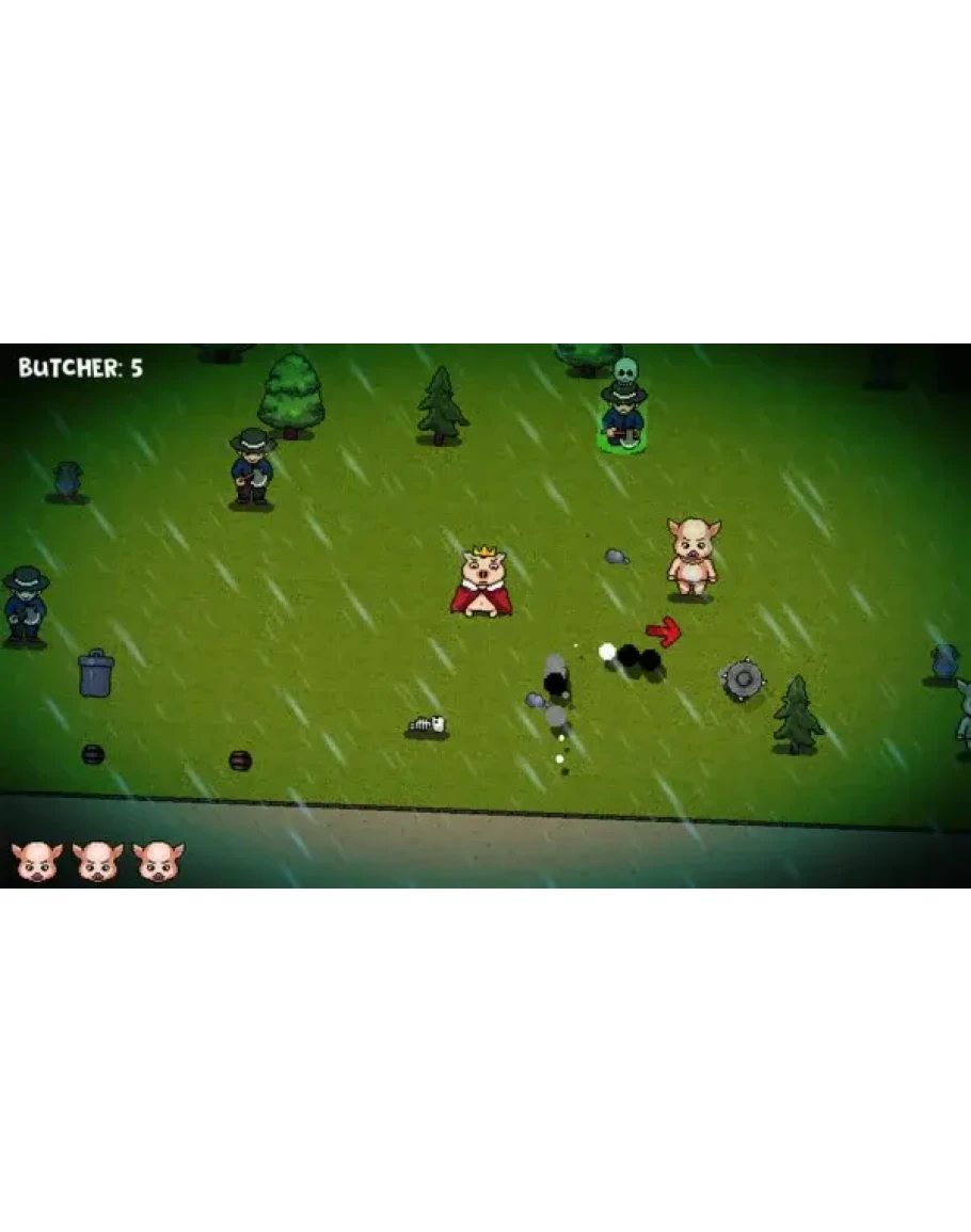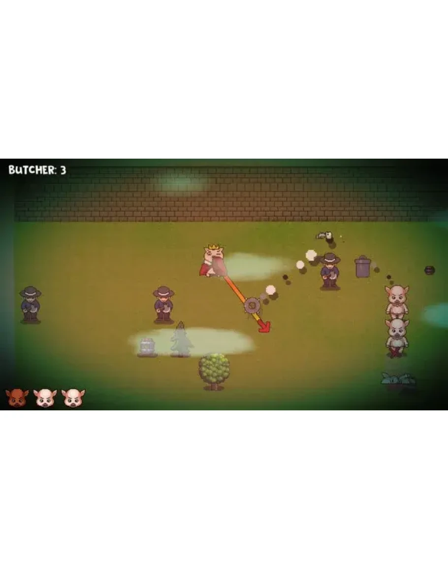 «King Pig» — аркадная игра старой школы с видом сверху. Ваша главная цель — спасти свиней от мясников. Будьте осторожны, пилы мясников не должны поранить свиней - уклоняйтесь от пилы своим сверхпрочным плащом и убейте всех мясников!