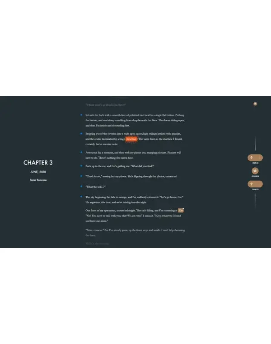 Penrose is a non-linear interactive novella unlike anything you've played before. Scroll forwards and backwards through an ever-changing story. Manipulate the environment, explore every possibility, and unravel the mystery at the heart of everything.
