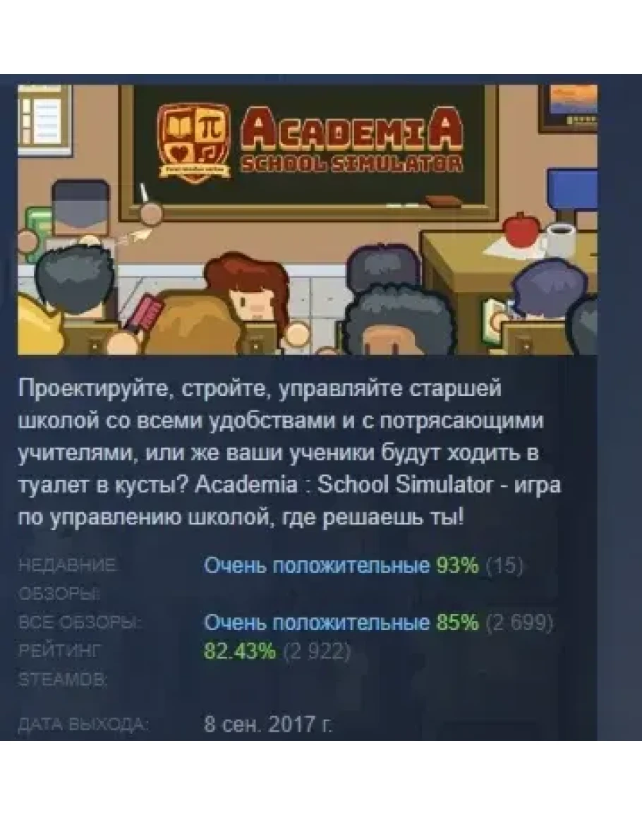 Academia : School Simulator АВТОДОСТАВКА STEAM РОССИЯ