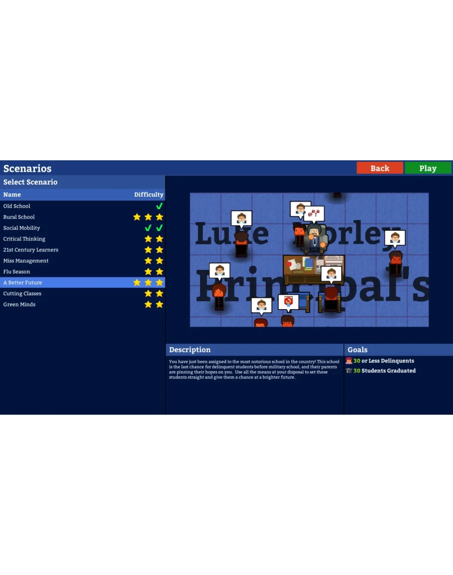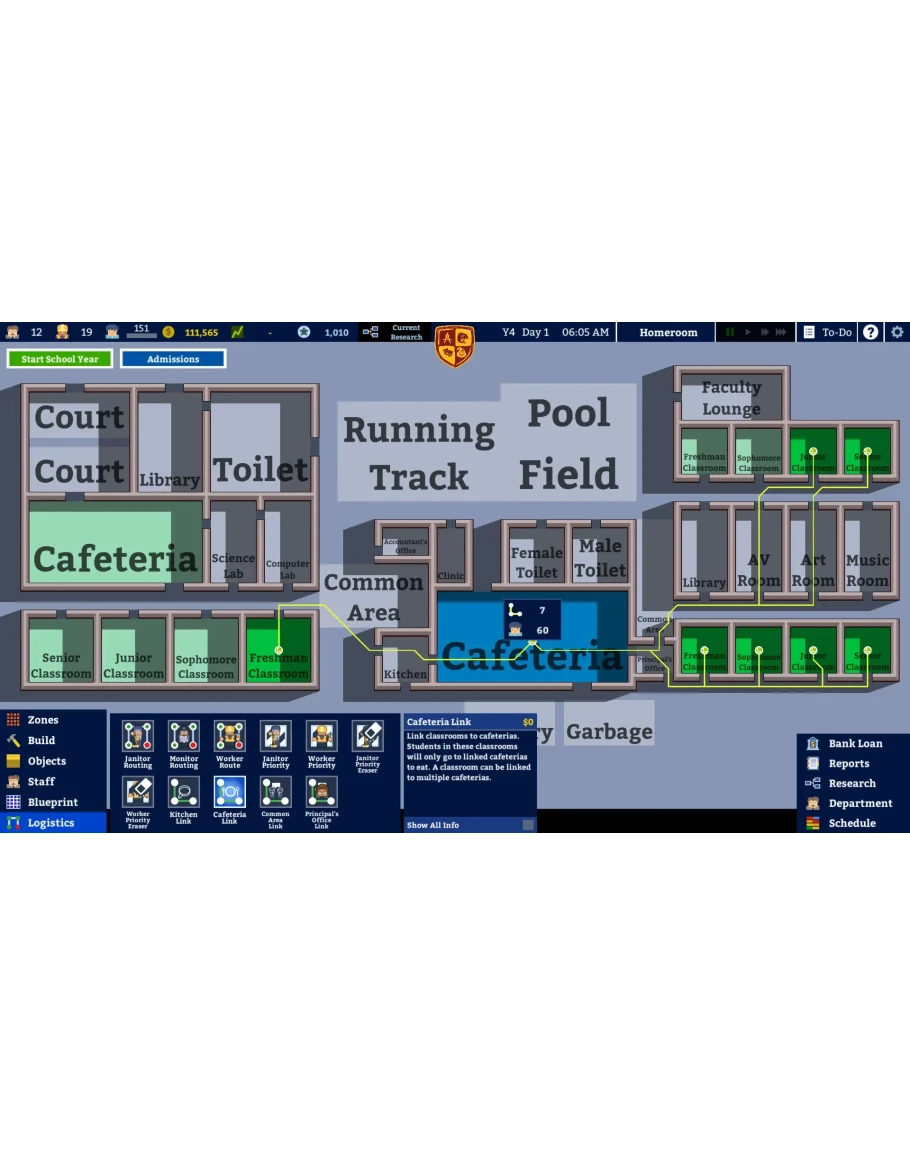 Проектируйте, стройте, управляйте старшей школой со всеми удобствами и с потрясающими учителями, или же ваши ученики будут ходить в туалет в кусты? Academia : School Simulator - игра по управлению школой, где решаешь ты!