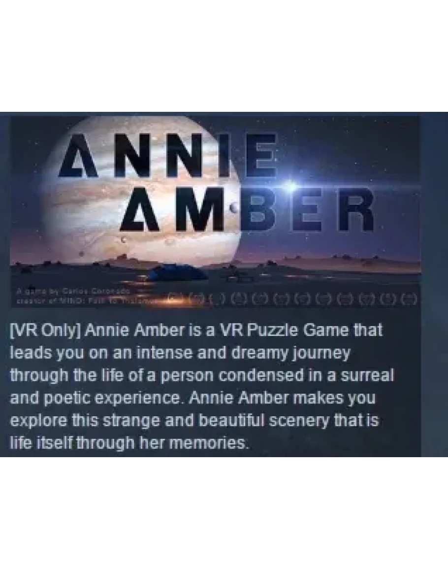 Annie Amber is a VR puzzle game that leads you on an intense and dreamy journey through the life of a person condensed in a surreal and poetic experience. With innovative controls, AA makes you explore this strange and beautiful scenery that is life itself while using your wit to make your way through different memories.