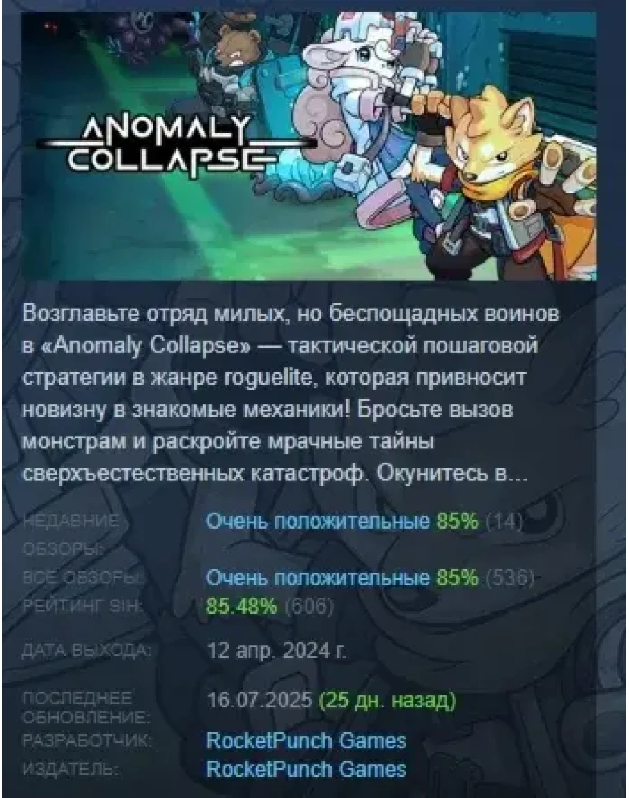 Возглавьте отряд милых, но беспощадных воинов в «Anomaly Collapse» — тактической пошаговой стратегии в жанре roguelite, которая привносит новизну в знакомые механики! Бросьте вызов монстрам и раскройте мрачные тайны сверхъестественных катастроф. Окунитесь в историю, где каждый ход имеет значение!