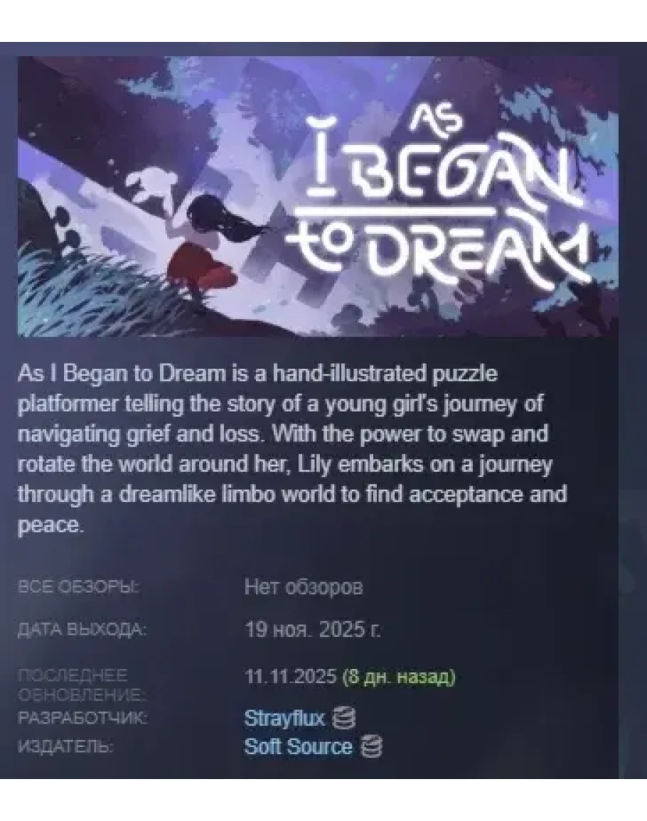 As I Began to Dream АВТОДОСТАВКА STEAM РОССИЯ
