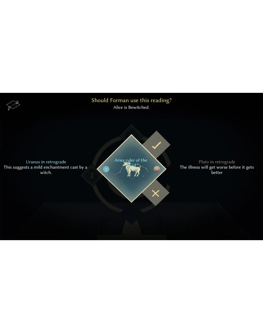 Исследуйте жизнь Формана, его работу и отношения с клиентами. Делайте выбор сюжета, выполняя астрологические прогнозы. Делайте стратегический выбор или принимайте решения просто так - но помните, что ваш выбор будет иметь последствия (и непредсказуемые побочные эффекты!).