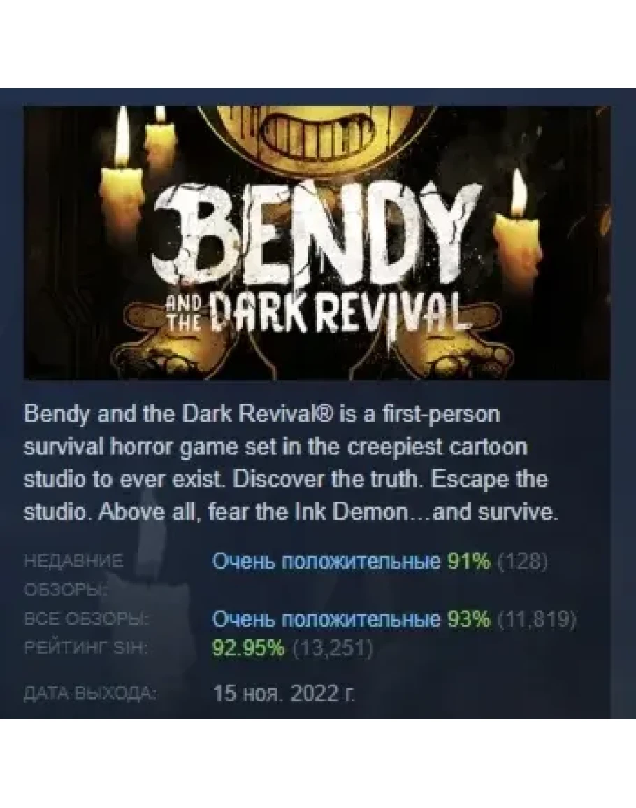 Bendy and the Dark Revival АВТОДОСТАВКА STEAM РОССИЯ