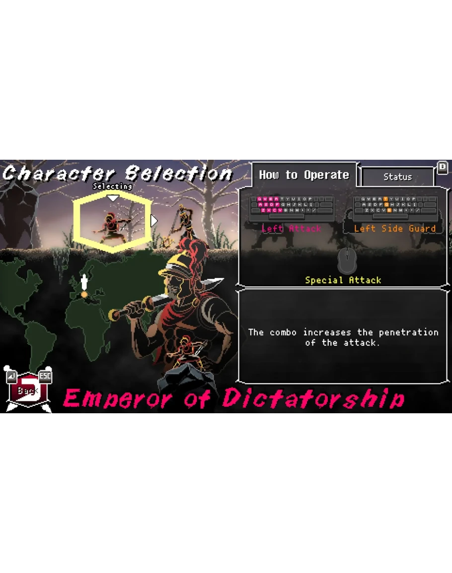 Отличительной особенностью игры является её уникальное управление, придающее каждому бою ещё больше азарта, — чем больше кнопок вы нажмёте, тем шире будет радиус атаки. Не останавливайтесь ни на секунду, чтобы провести мощную атаку и победить больше врагов одним махом. Зарядите шкалу особой атаки, чтобы показать всю свою мощь. Играть можно не только на клавиатуре, но и на геймпаде или контроллере.