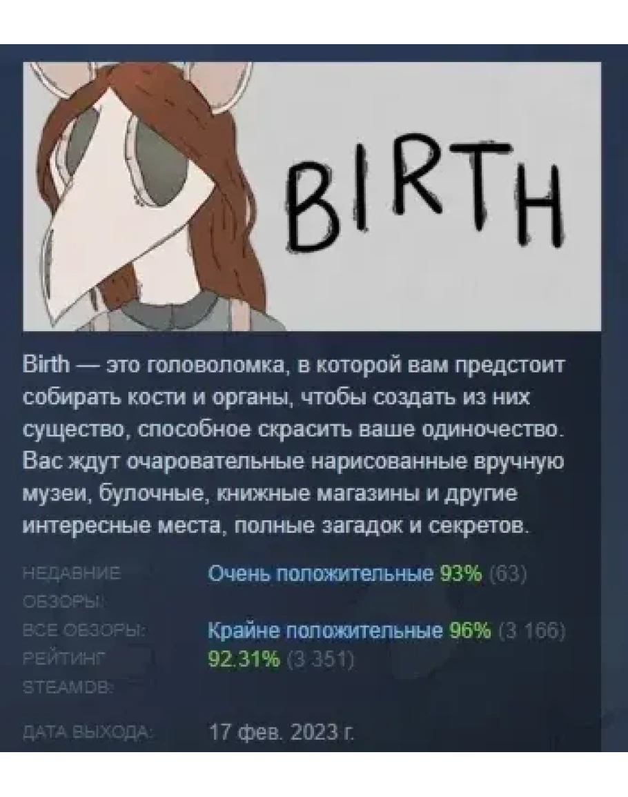 Birth АВТОДОСТАВКА STEAM GIFT РОССИЯ