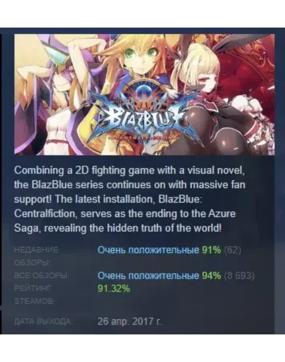 BlazBlue Centralfiction АВТОДОСТАВКА STEAM РОССИЯ