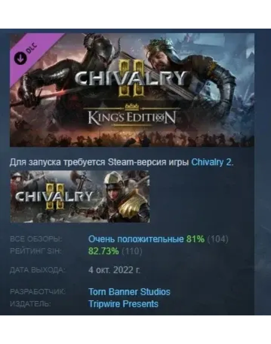 Chivalry 2 - King's Edition Content DLC STEAM РОССИЯ