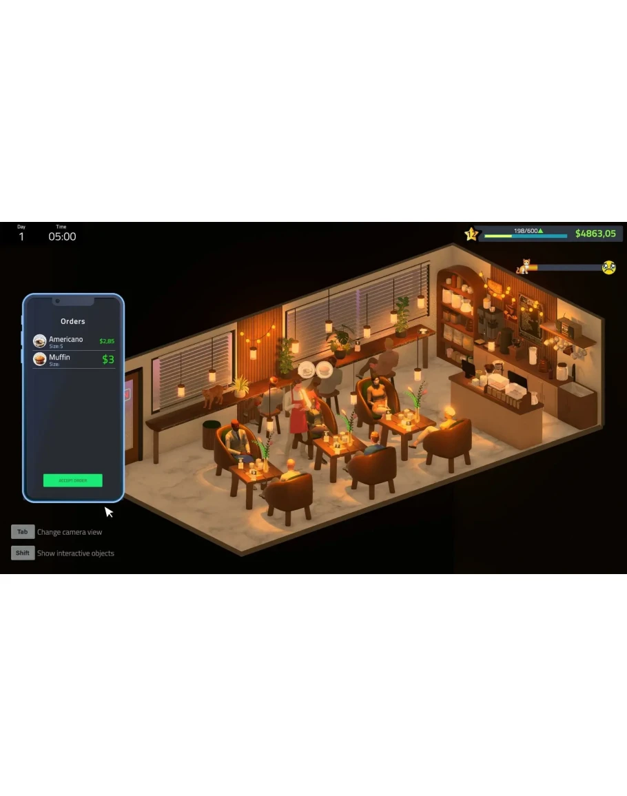 Станьте владельцем уютной кофейни. Управляйте запасами, устанавливайте цены, принимайте платежи, расширяйте и украшайте свое заведение, и, конечно, позаботьтесь о кошке.