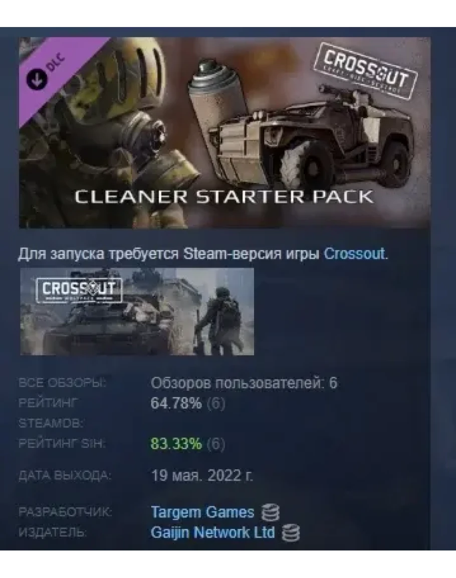 Crossout Cleaner Starter Pack DLC STEAM GIFT РОССИЯ