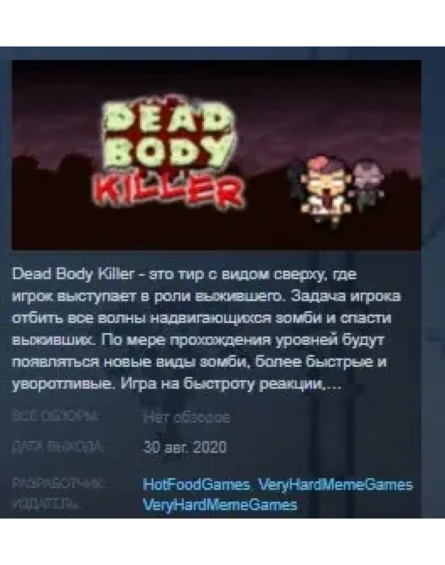 Если хочешь почувствовать себя выжившим в зомби апокалипсисе и весело убить время и пару сотен зомби, то Dead Body Killer игра для тебя!