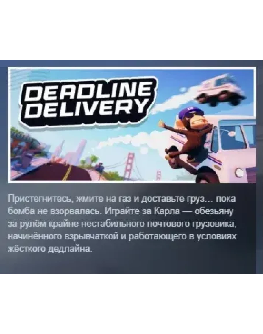Пристегнитесь, жмите на газ и доставьте груз… пока бомба не взорвалась. Играйте за Карла — обезьяну за рулём крайне нестабильного почтового грузовика, начинённого взрывчаткой и работающего в условиях жёсткого дедлайна.