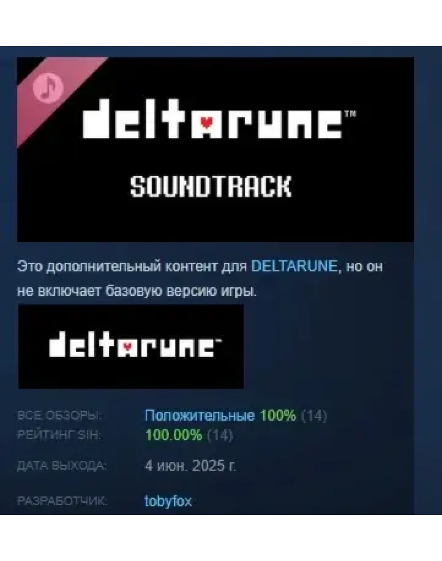 DELTARUNE Soundtrack DLC STEAM РОССИЯ