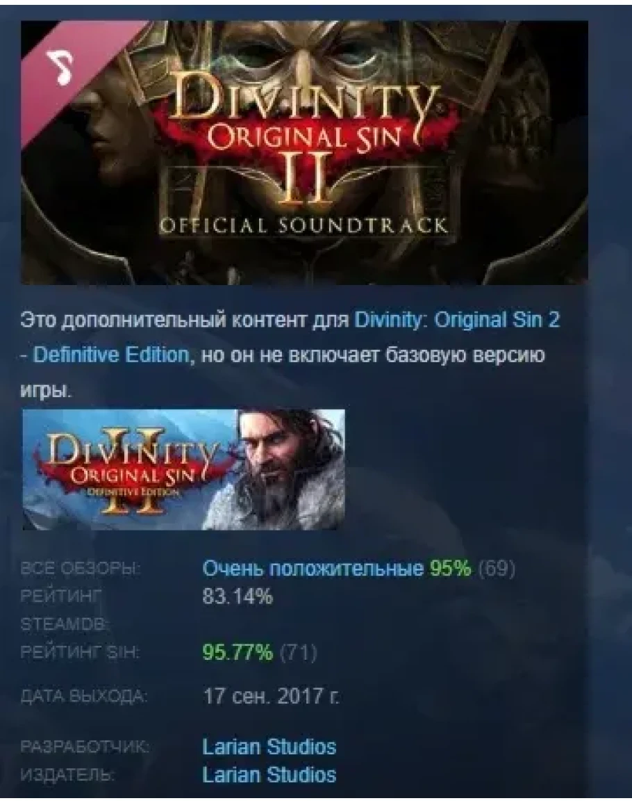 Divinity: Original Sin 2 - Official Soundtrack STEAM РФ