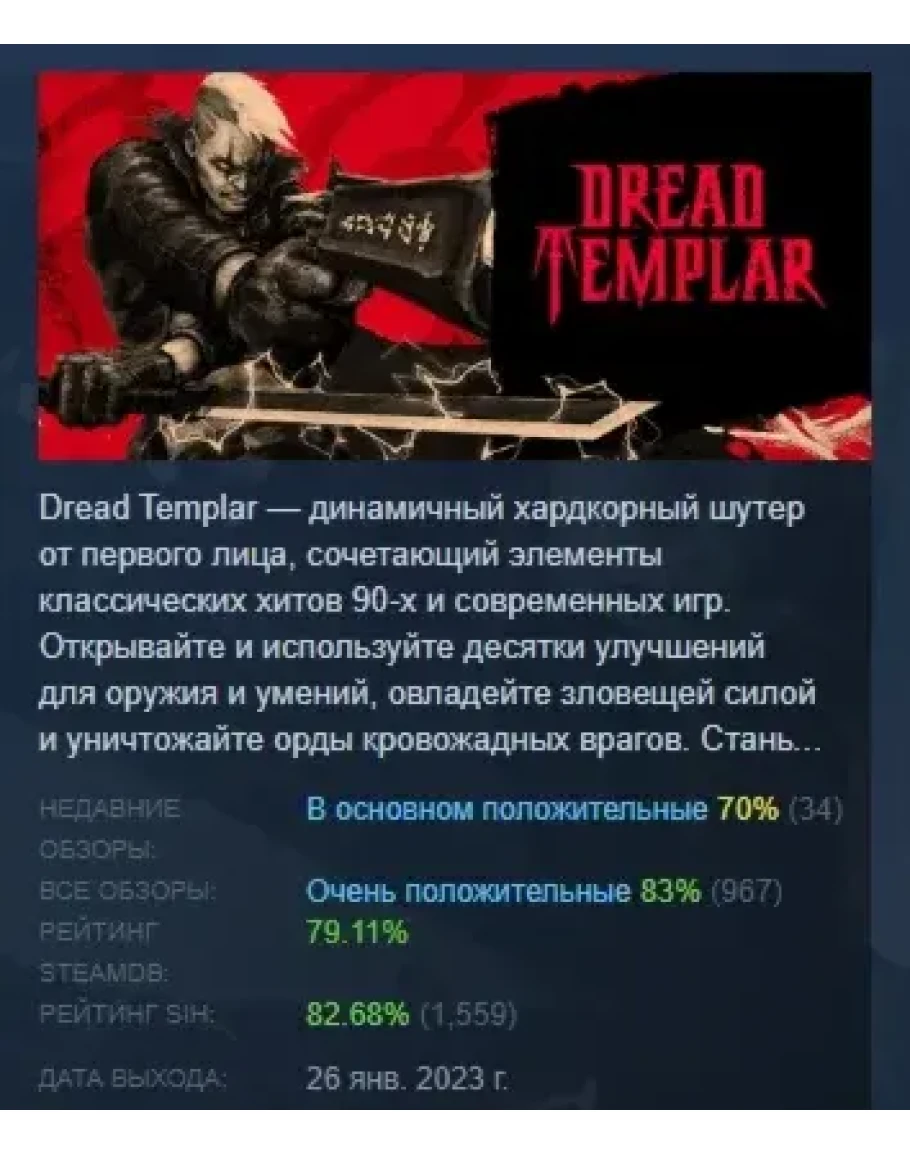 Dread Templar АВТОДОСТАВКА STEAM GIFT РОССИЯ