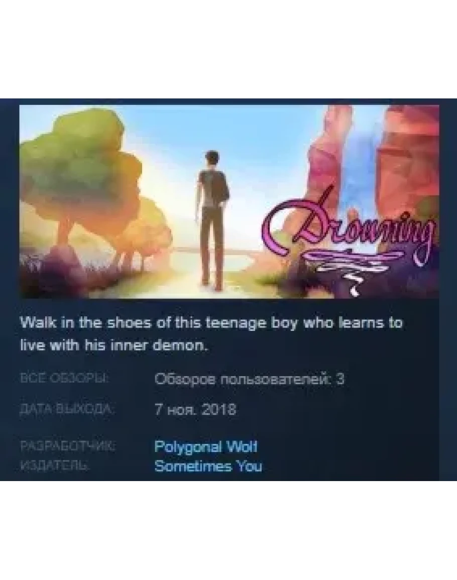 Drowning is a short game about a boy who quickly discovers he has depression in his earlier years of high school. Walk through a variety of beautiful low-poly environments as a story unfolds about how he deals with depression.