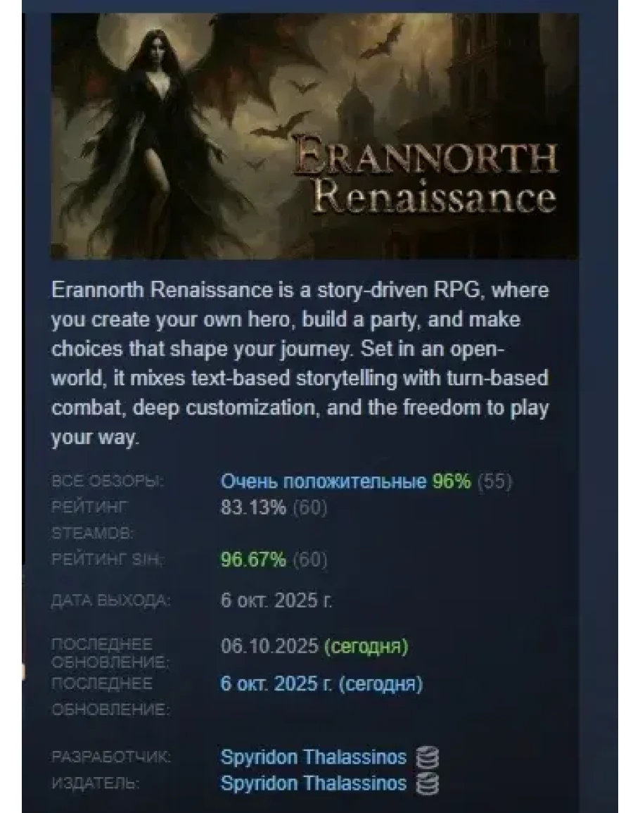 Erannorth Renaissance АВТОДОСТАВКА STEAM РОССИЯ