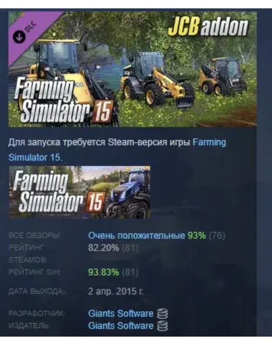 Farming Simulator 15 - JCB DLC STEAM GIFT РОССИЯ