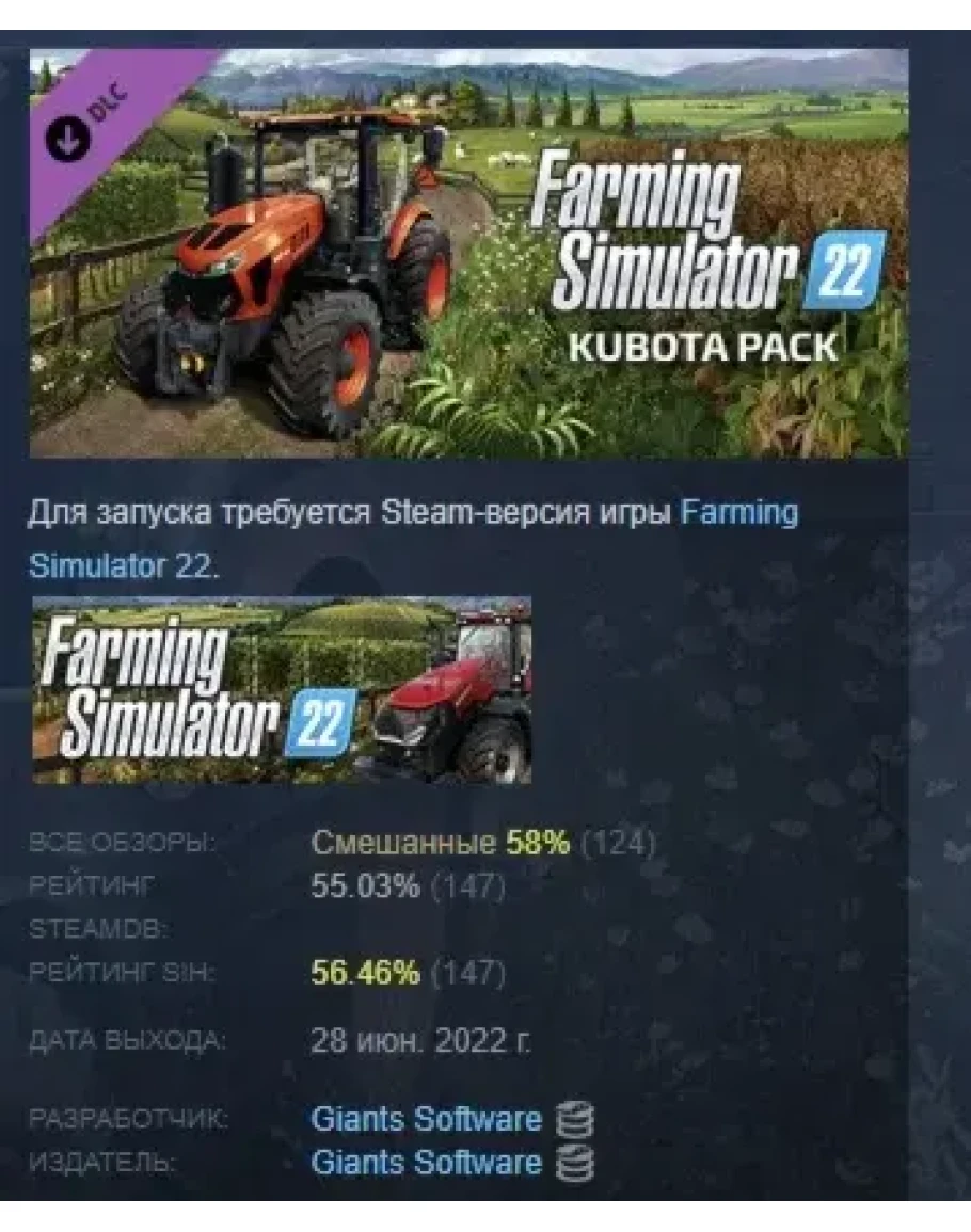 Farming Simulator 22 - Kubota Pack DLC STEAM РОССИЯ