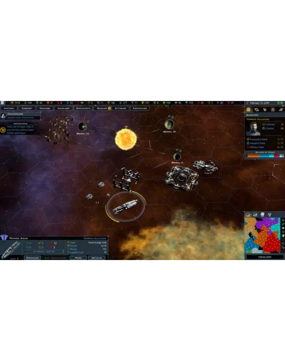 Исследуйте новые технологии, разрабатывайте космические корабли и колонизируйте иные миры. Вас ждет множество неведомых опасностей и удивительных испытаний. Подписывайте торговые и дипломатические соглашения, объявляйте войны, шпионьте за врагами и поддерживайте выдающихся граждан. Ну а потом вы сможете сыграть за любую из инопланетных цивилизаций. У каждой из них есть своя история, древо технологий, компоненты кораблей и многое другое.