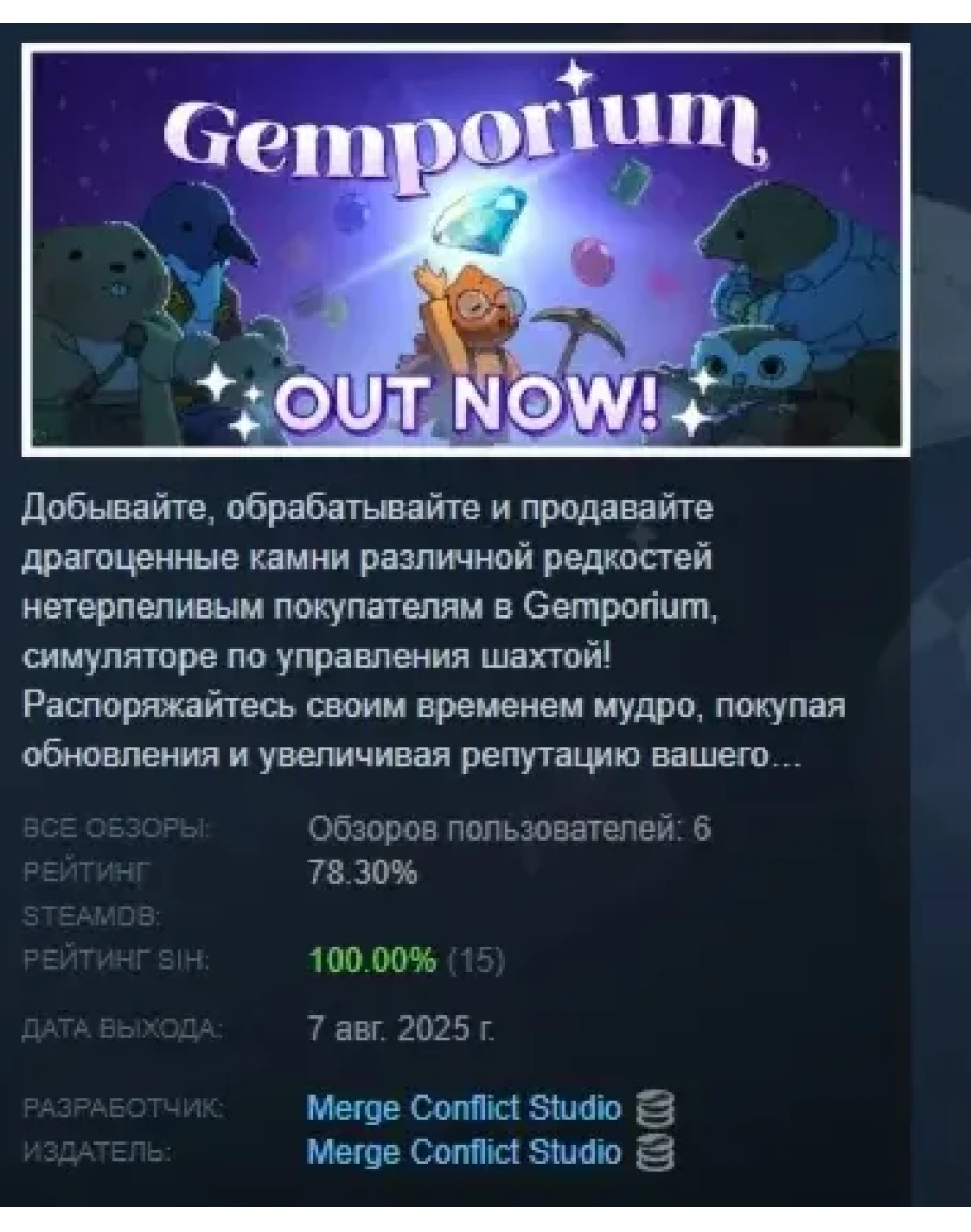 Gemporium: A Cute Mining Sim АВТОДОСТАВКА STEAM РОССИЯ