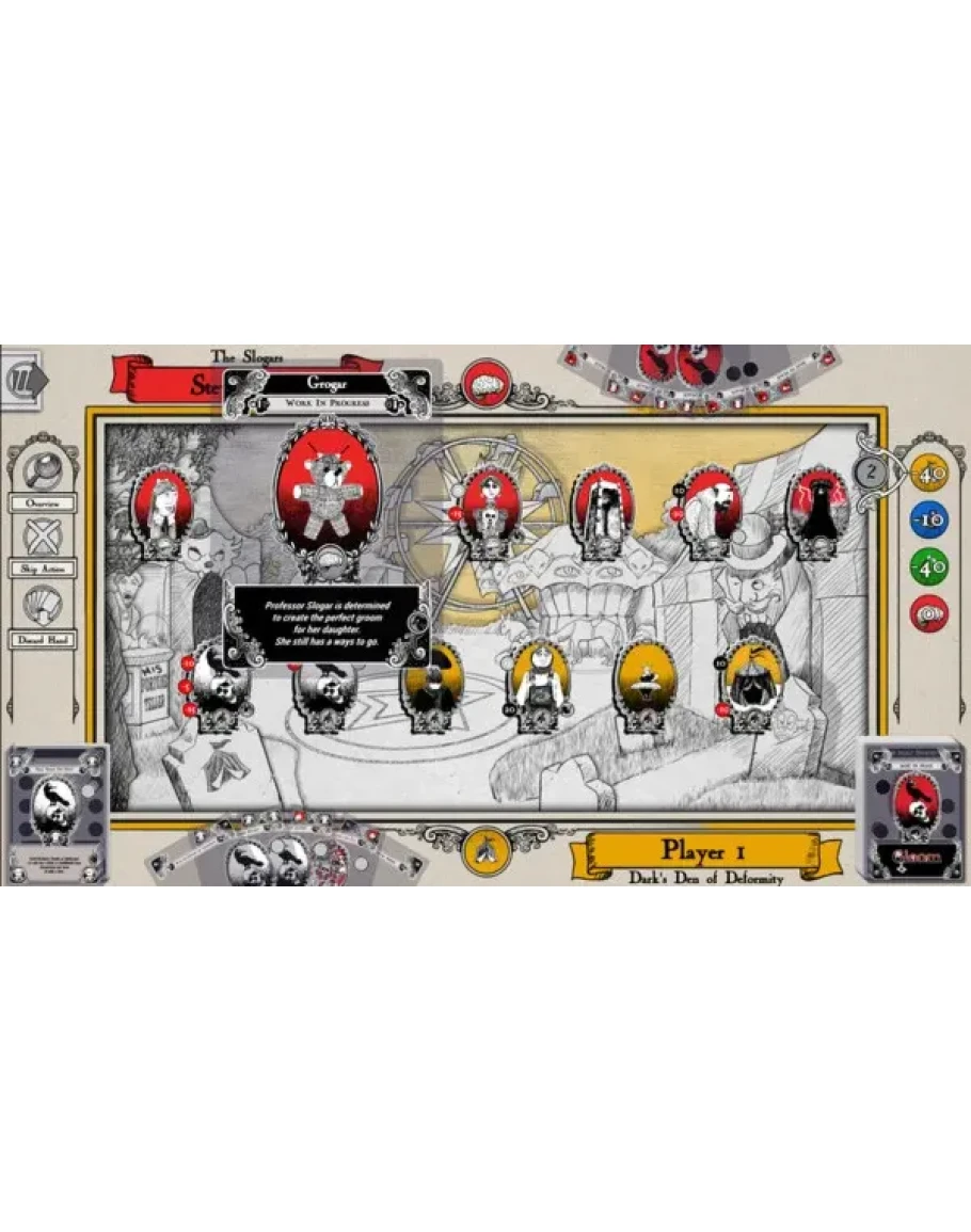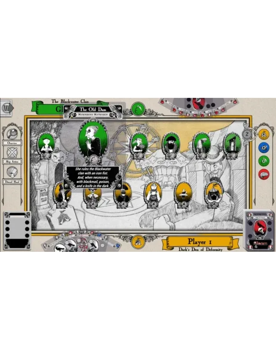 Each player controls the fate of an eccentric family of misfits. Your goal is sad, but simple: make your family suffer the greatest tragedies possible before allowing them to pass on to the well-deserved respite of death.