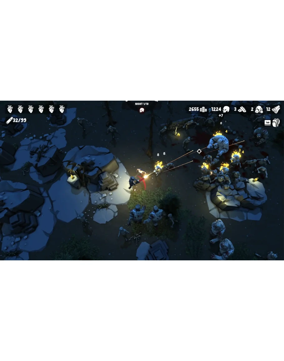 Стреляйте в орды зомби на арене рогалик-шутера с буллет-хеллом. Днем собирайте ресурсы, разблокируйте области карты и готовьтесь к предстоящей ночи. Создавайте уникальные стратегии, комбинируя персонажей, оружие и исследуя обширное дерево способностей.